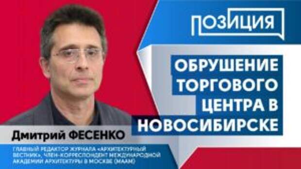 Как и почему рухнул торговый центр в Новосибирске, в программе «Позиция» рассказал главный редактор журнала «Архитектурный вестник», советник Российской академии архитектуры и строительных наук (РААСН), член-корреспондент Международной Академии архитектуры в Москве (МААМ) Дмитрий Фесенко.